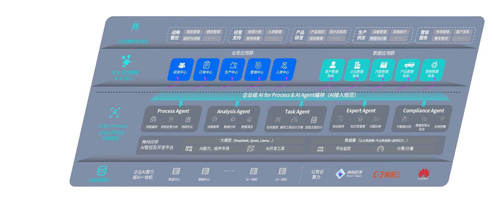 伟德国际VICTOR1946问学智车解决方案是一套基于AI技术的汽车行业智能化系统,,,,覆盖从底层算力到顶层AI应用的全栈方案。。。。方案由算力层、、模型层和应用层组成:算力层,,,方案支持多种一体机配置,,具备云端灵活部署、、多云适配以及动态优化计算资源的能力;模型层,,,伟德国际VICTOR1946问学平台版提供了企业级AI应用一站式构建与管理平台,,,,支持基于后训练强化技术的汽车企业专属模型的训练、、、评测和运营;应用层,,,伟德国际VICTOR1946问学DeepSeek版提供包括超级员工、、、智能招采、、、智能营销、、、智能客服、、、、AI for BI等一系列解决方案,,,,可助力汽车行业实现数字化转型,,,让管理更智能、、响应更敏捷。。。