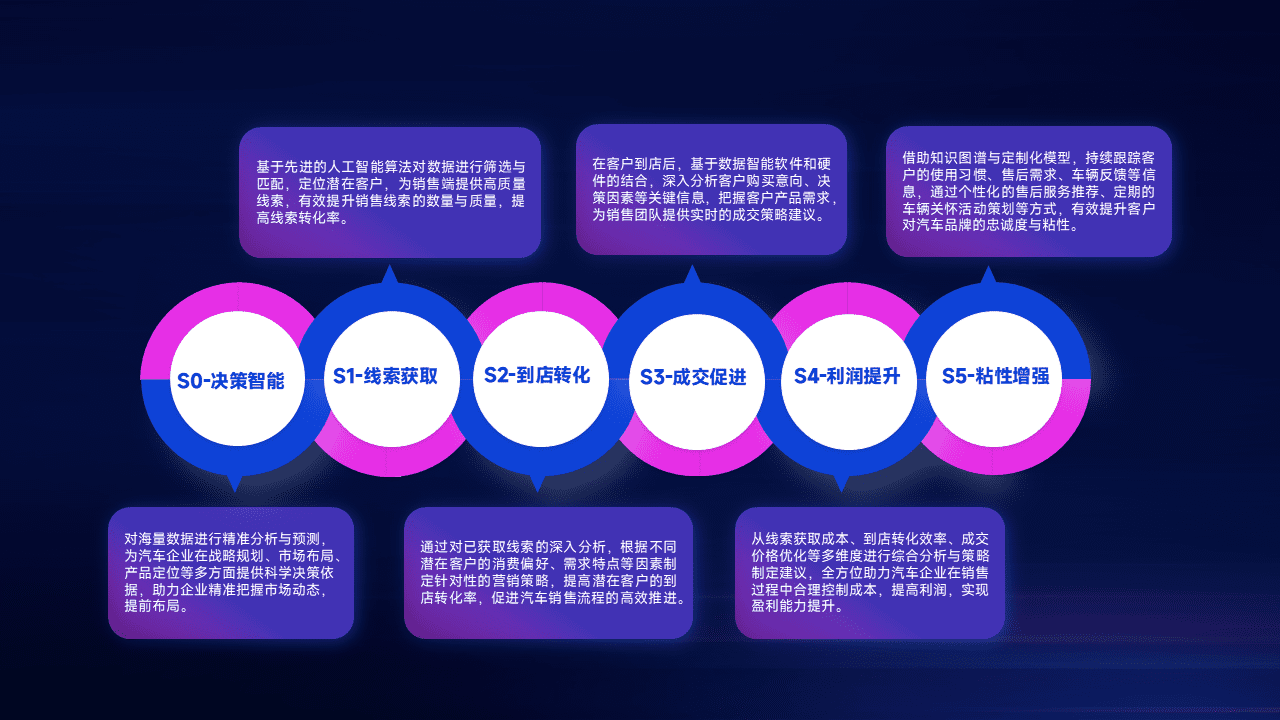 通过拓宽潜在客户来源、、、优化线索分配并提高到店转化率,,,以增强销售效率。。。。同时,,利用线索数据不断优化分析模型,,有效提升转化率,,扩大营销影响力。。。。